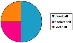 In chart B, half the boys chose baseball; a quarter of the boys chose football; one in four chose basketball.
