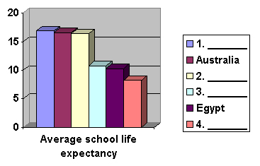 The following chart shows average school life expectancy (i.e. how many years students spend in full-time education) in six different countries.