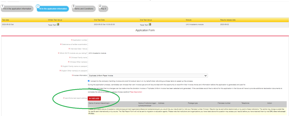 B. Additional Test Report Form- If you’re going to apply electronic test report form, please put in the institution or organization name and put a space at the end of the blank. Please fill in all necessary information and ensure the recipient’s mobile phone has been provided.